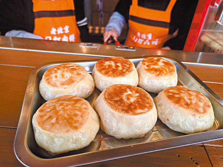 門釘肉餅:採用「搞餡」手藝,薄皮大餡,出鍋後外焦裏嫩,汁鮮餡美。由於牛油容易凝固,所以最好趁熱吃,口感才好。但趁熱吃,卻不能一口咬下去,易燙着嘴,並唧出一身油。