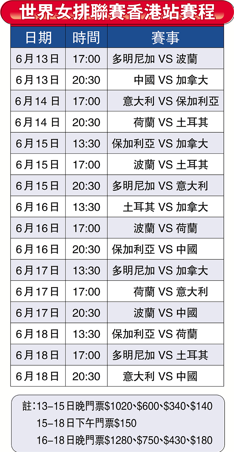 女排世聯賽重臨香江 周二公開售票 惠若琪懷念在港比賽
