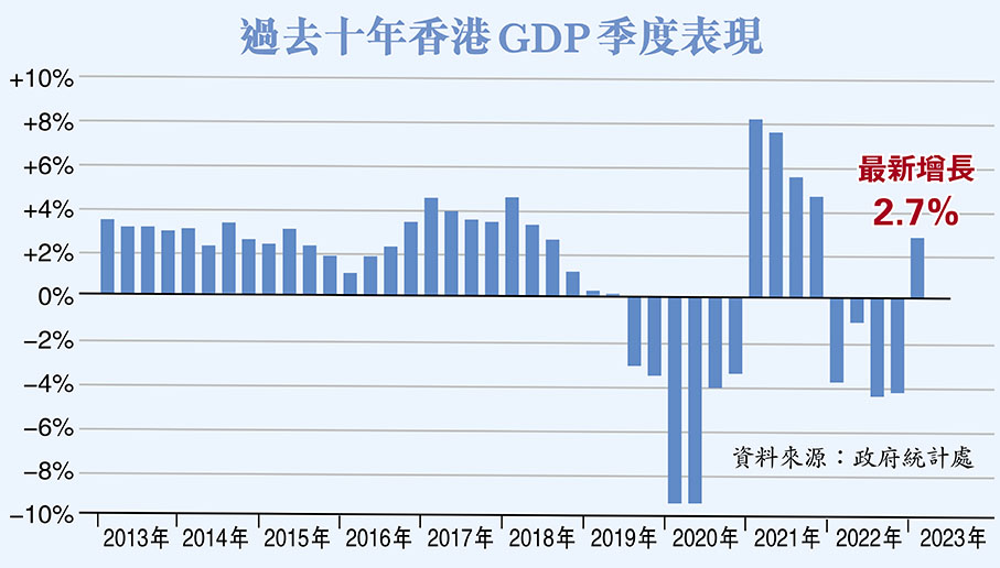 港復常經濟加速 首季GDP增2.7%