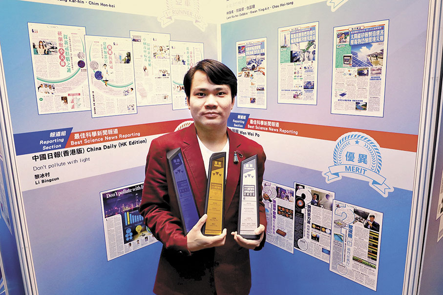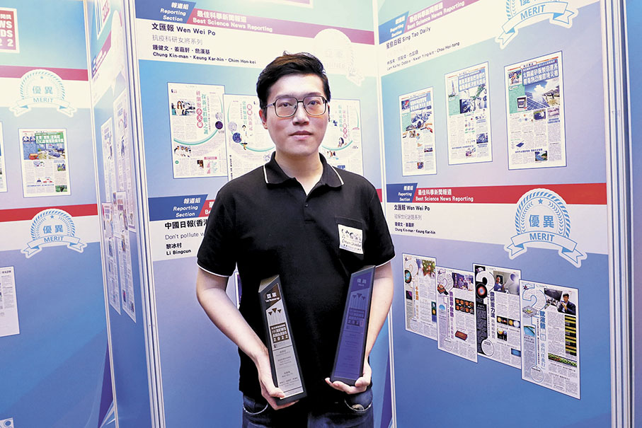 姜嘉軒:我有幸參與兩項得獎科研系列報道。在「破解世紀謎團」系列中,教育組同事致力將困擾科學界數以百年計的艱深問題,以深入淺出方式呈現讀者眼前,再邀得多位本港知名科學家現身說法,分享他們如何發揮睿智,破解及進一步探索一個又一個世紀科學謎團,期望可讓更多市民認識本港不同類型的科學成果。