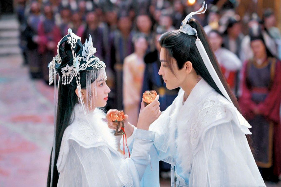 而雁回(周也飾)早該因為心臟不好的原因逝去,她之所以後來身體健康,還能修仙問道,卻是因為天曜在被肢解的那天拚盡修為將自己的護心鱗打出結界,最終那塊護心鱗落到了小小的命不久矣的雁回的身上,護她平安長大,兩個人的命運從此相交。天曜在人世間難受了20年,在這時候雁回出現了,一路上多次生死相隨,到最後願意為了他去赴死,天曜到最後明知取不回內丹自己與清廣之戰必輸,他也絕不動搖,他沒有想過要從雁回身體裏取出內丹,寧願自己死,也不要雁回死。兩人就這樣互相疼惜,互相摯愛。就如天曜所說,如果所有的相遇都是久別重逢,為了遇見她,他等了一千年。他用一千年的時光才等來命中注定的那個人。非常感動。其實,今生所幸都是彼此的救贖,是不離不棄只護一人心的守候。