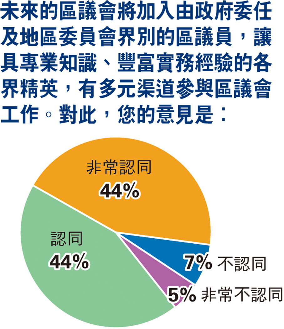 88%指加入委任制等可廣納各界精英 近半盼未來區會為民解難