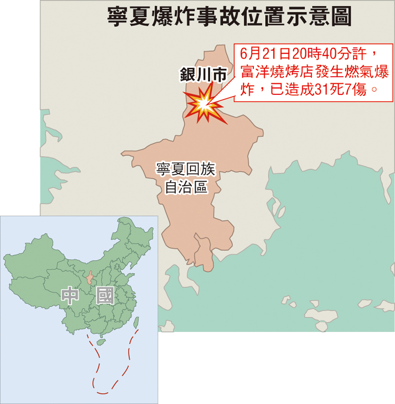寧夏燒烤店燃氣爆炸31死 九責任人被控制