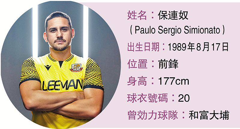 香港文匯報訊(記者 陳曉莉)港超球隊理文昨日宣布,簽入巴西籍前鋒保連奴。他將披20號球衣。