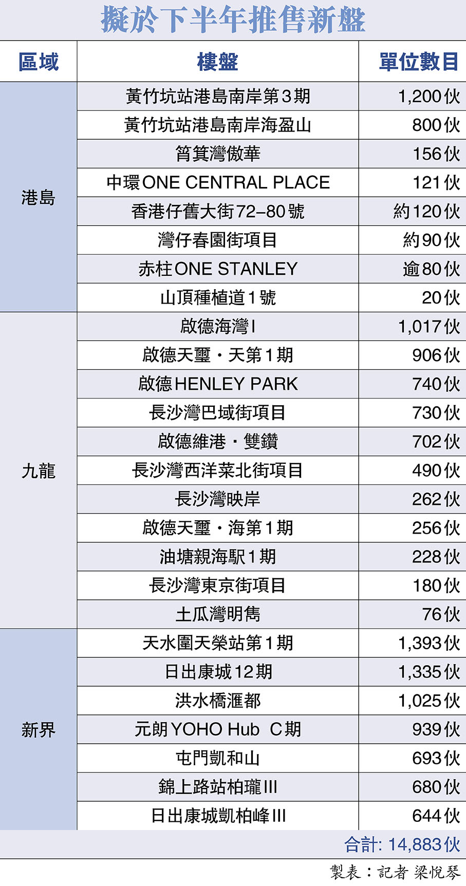逾1.4萬伙下半年應市 聚焦四大地區