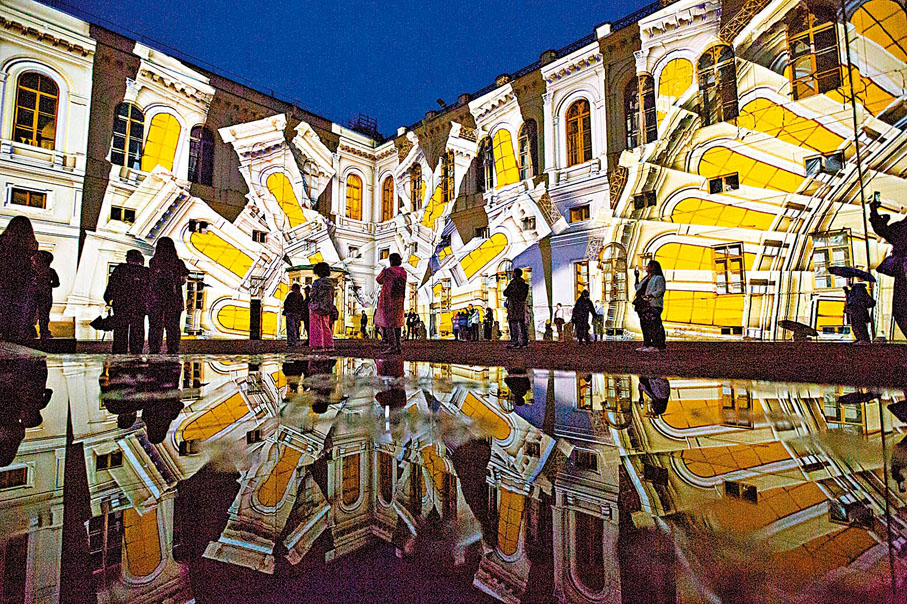 俄羅斯聖彼得堡附近的加特契納宮早前舉辦國際燈光藝術節,來自俄羅斯、土耳其、突尼斯和西班牙等國的多媒體藝術領域專業人士展示了自己的作品,而民眾在觀賞燈光秀。今屆藝術節主題為「展望未來」,旨在用現代技術描繪對未來生活的想像,展現人與科技的和諧關係。 ◆文/圖︰新華社