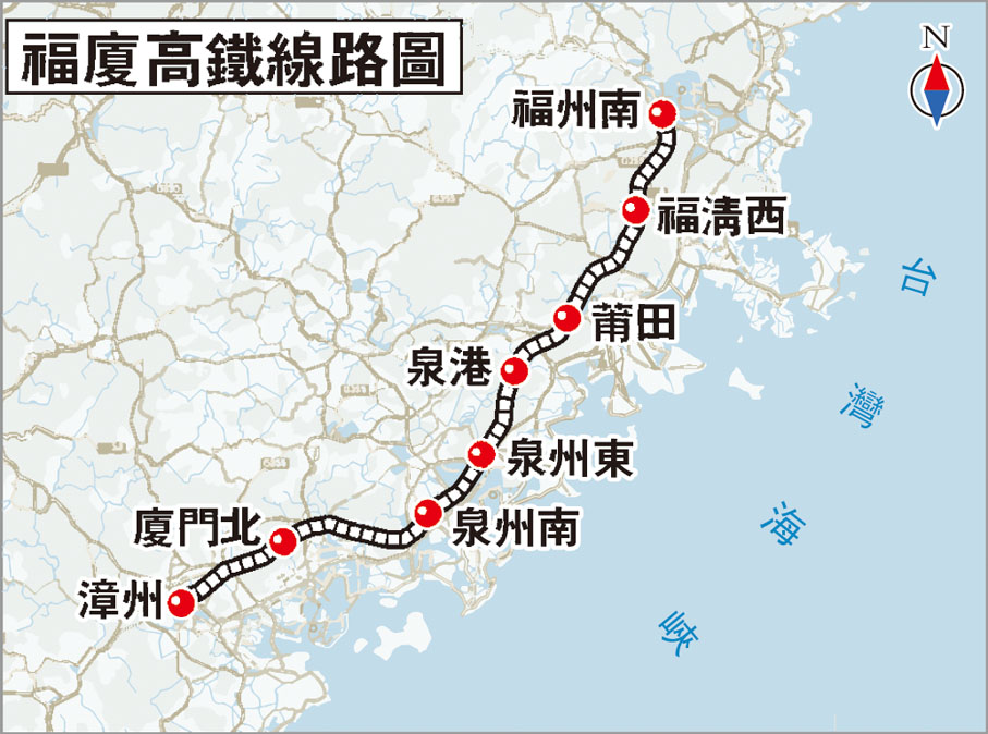 起福州南經廈門達漳州共8站 跨湄洲灣泉州灣及安海灣三座跨海大橋