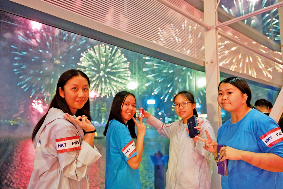 晚會更特別邀請了超過60位「共創明『Teen』計劃」的學員,他們均是來自基層家庭的中一至中三學生。主辦方希望藉此活動與學生們共同分享國慶的喜悅,參與的學生對於被邀在近距離觀賞煙花感到非常興奮,表示能參與這場盛大的晚會令人難忘。香港電訊聯同富衛保險合力支持「共創明『Teen』計劃」,今年舉辦多個多元化的體驗和參觀活動,包括電視節目製作體驗、創新科技示範分享、活化古蹟參觀及工作坊等,更有接近150名員工報名成為義務友師,希望協助各學員開闊眼界和探索更多發展路向,力爭上游。