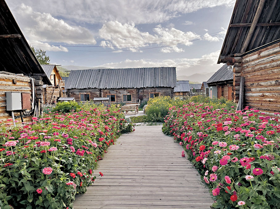 禾木村還有一家花園式酒店——禾木山莊,完美發揚禾木風情,集合小木屋、花海、雪山、美食於一身,實現你心中的「禾木式嚮往的生活」。
