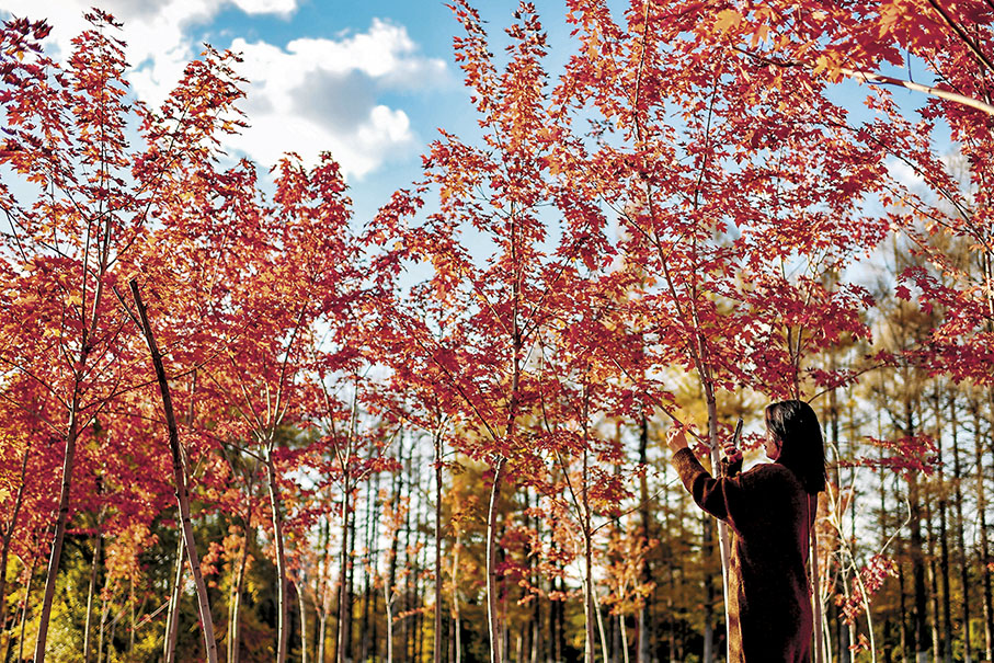 金秋時節,吉林省長春市秋意濃郁,景色如畫。火紅的楓葉,成為了市民爭相拍照「打卡」的地點。