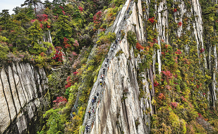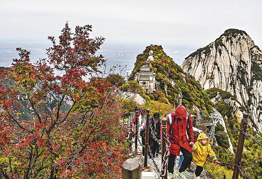秋高氣爽,最宜登高望遠。華山在今秋迎來眾多遊客,漫山的紅葉絢爛多姿,為登山遊客提供了一路上的視覺享受。