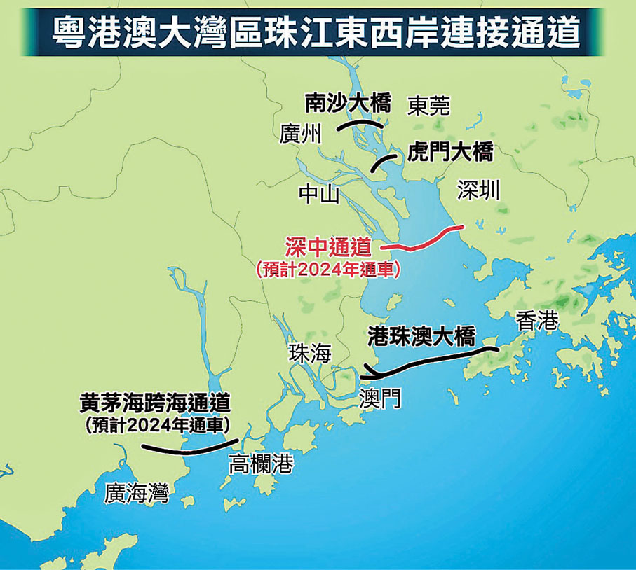 中山大學港澳珠三角研究中心教授鄭天祥表示,深中通道將與已通車的虎門大橋、南沙大橋、港珠澳大橋,規劃建設的深珠通道等工程一起,在珠江口形成「灣區跨海跨江通道群」,將大灣區城市群串珠成鏈,構建大灣區一小時乃至半小時經濟圈的新格局,同時助力打造環珠江口100公里「黃金內灣」。據悉,「黃金內灣」涵蓋了橫琴粵澳深度合作區、珠海高新區、中山翠亨新區、南沙粵港澳全面合作示範區、東莞濱海灣新區、前海深港現代服務業合作區、河套深港科技創新合作區等重點平台。鄭天祥建議,粵港澳攜手共同做好「黃金內灣」新規劃,可明確將香港「北部都會區」等納入,真正形成大灣區「超級城市群」。