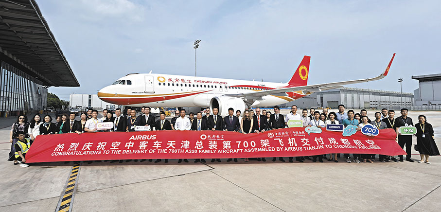 7月8日,位於天津的空客A320系列飛機亞洲總裝線,正式交付第700架在中國完成總裝的飛機。該架飛機為空客A320neo機型,由成都航空接收運營,共設180個經濟艙座位。 ◆圖/文:中新社