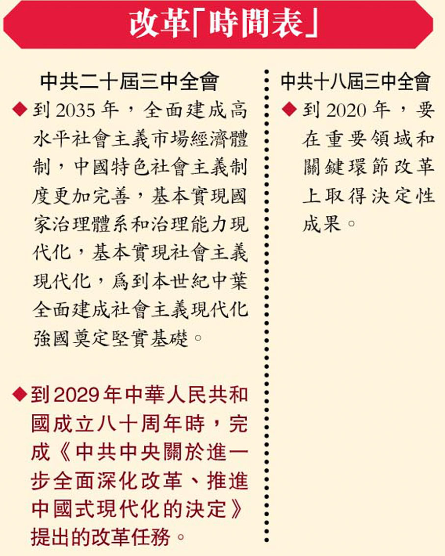 ◆到2029年中華人民共和國成立八十周年時,完成《中共中央關於進一步全面深化改革、推進中國式現代化的決定》提出的改革任務。
