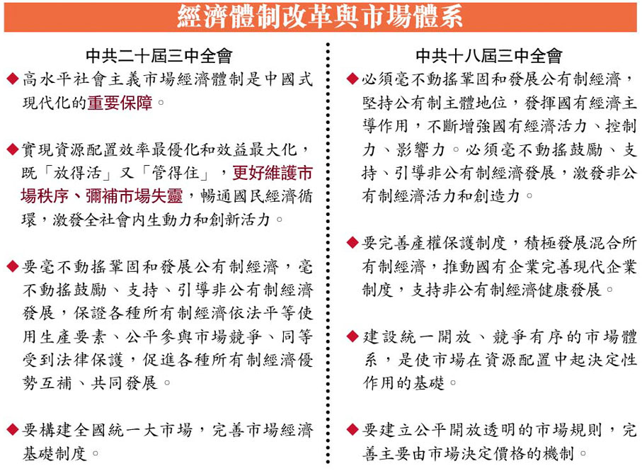 中共二十屆三中全會和十八屆三中全會公報對比