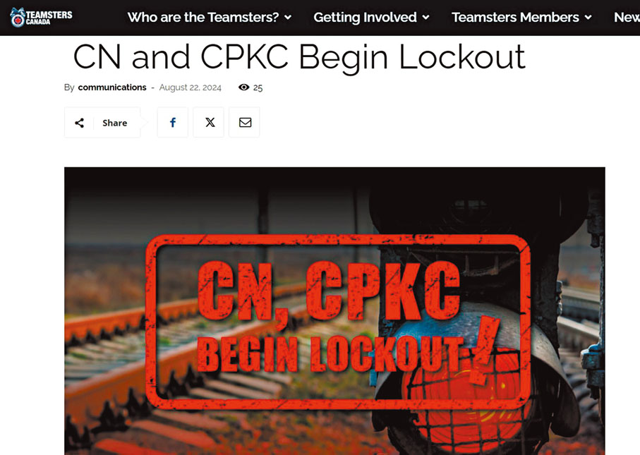 香港文匯報訊 (特約記者 成小智 多倫多報道)加拿大國家鐵路(CN Rail)和加拿大太平洋堪薩斯城鐵路(CPKC)與代表9,300名貨運司機的工會Teamsters談判破裂,導致兩大鐵路公司從東岸時間周四(22日)零時01分開始停運。加拿大因此每天經濟損失3.41億加元(約19.6億港元),還拖累加拿大與美國以至北美地區的供應鏈中斷,後果嚴重。
