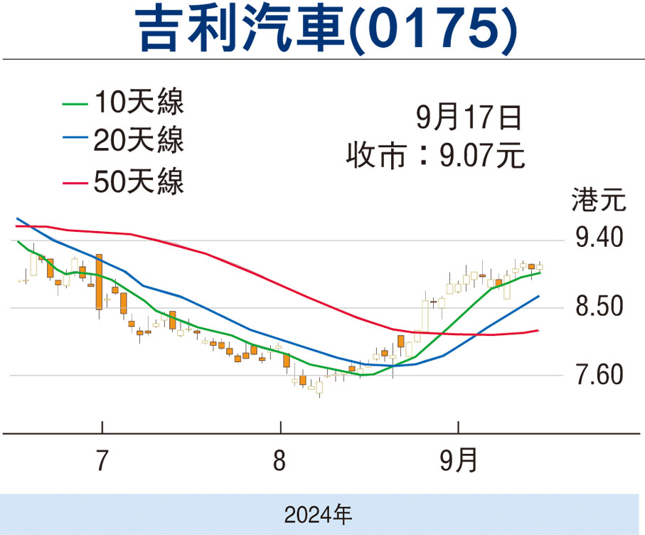 港股昨追隨美股創新高,恒指急升1.3%,扳上17,600水平。汽車板塊造好,吉利汽車(0175)受惠汽車降首付促進舊換新政策,有利估值回升。吉利汽車為浙江民企,大股東兼董事長李書福持股41.92%。集團在港借殼上市20周年,市值913.3億元。大股東兼主席李書福持股41.19%。
