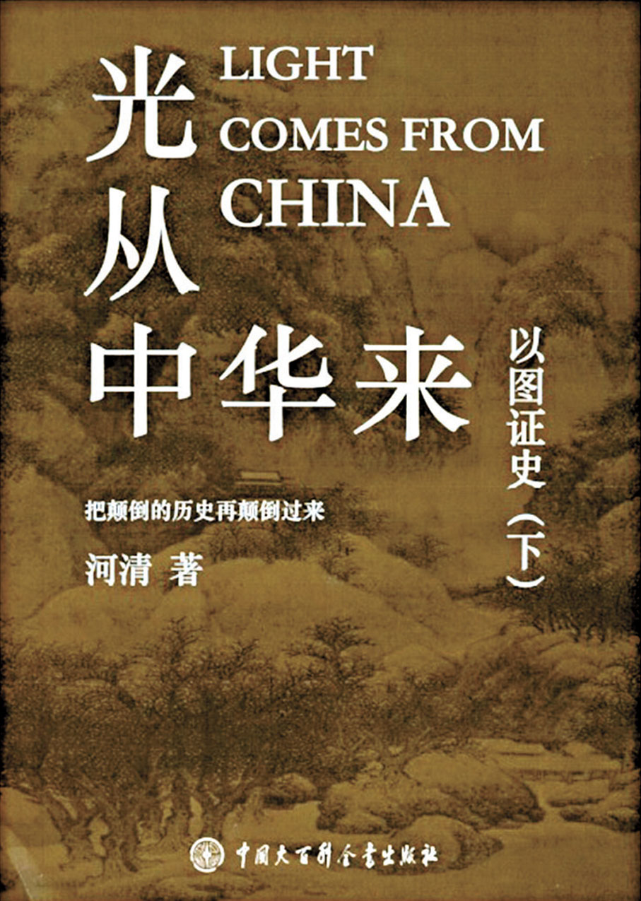 黃河清教《以圖證史》的下冊《光從中華來》(見圖)圖文並茂,介紹中國的偉大發明是如何光照南歐西亞,讓他們脫離中古時代的黑暗,得到來自東方的人類的文明之光。