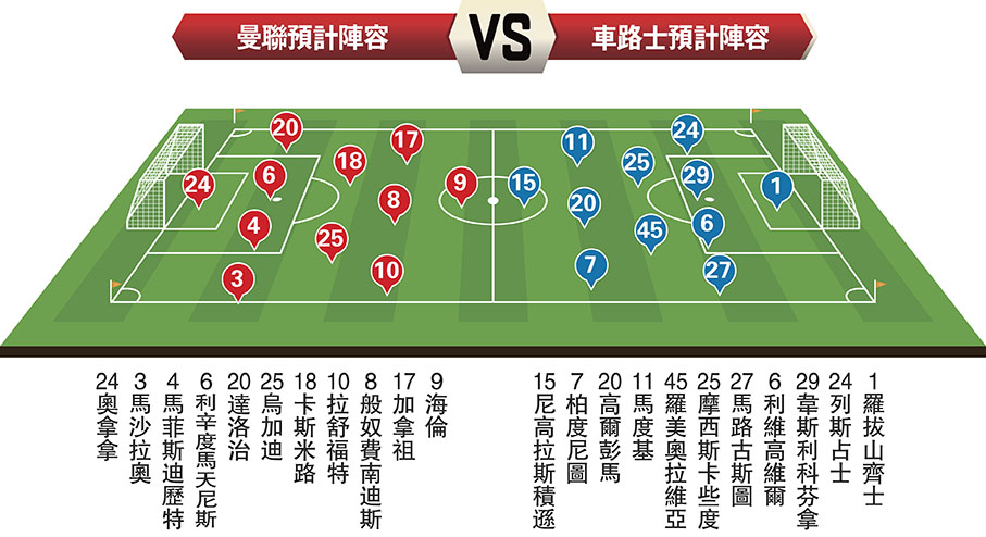 車路士近三輪得勝負和各一,進攻很大程度依賴高爾彭馬的發揮,但整體狀態還是比曼聯穩定,連續兩次敗走奧脫福球場後今次力爭取分而回。主帥馬利斯卡賽前透露,上季中場核心安素費南迪斯是役將被棄用,並提醒球員沒有人的位置是絕對安全。