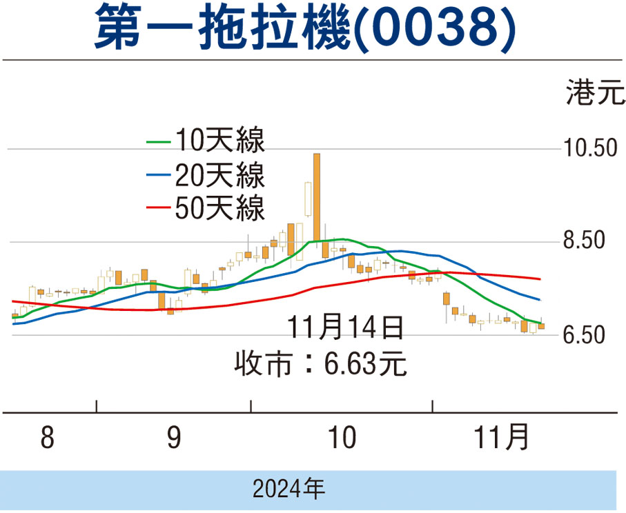 一拖股價今年以來大幅上升,由年初3.98元(港元,下同)拾級攀至9月底的10.40元高位,其後受大市急跌及10月底三季度業績失利影響,股價下滑至周二的6.55元獲承接回升,期間插水37%。