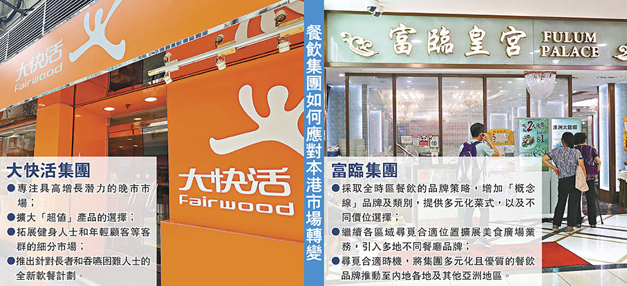集團指,今年餐飲業已經高度分散,預計這種趨勢將持續。受經濟壓力影響,飲食消費向下調整的趨勢預期將為集團帶來增長機遇。集團亦已加大力度將大快活打造成高質且價格合理的美食品牌,尤其在晚市業務方面,許多菜式已擺脫傳統「快餐」的概念。另外,軟餐在未來有龐大發展空間。
