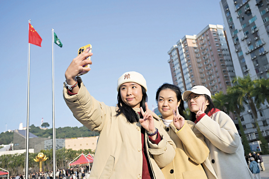 香港文匯報訊 澳門特別行政區政府昨晨在金蓮花廣場舉行升旗儀式,慶祝澳門回歸祖國25周年。