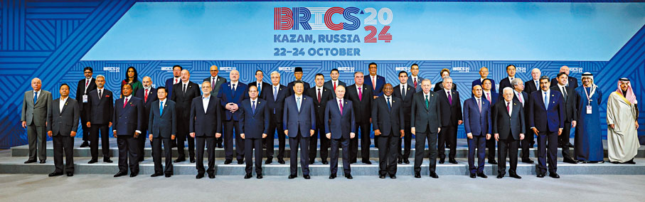 沙特、埃及、阿聯酋、伊朗、埃塞俄比亞於1月1日起成為金磚成員,「大金磚合作」正式開啟。10月22日至24日,金磚擴員後的首次金磚國家領導人峰會在俄羅斯喀山舉行,受到國際社會高度矚目。習近平主席在喀山會晤期間深刻闡述推動「大金磚合作」高質量發展的中國主張,指出金磚國家應努力建設和平金磚、創新金磚、綠色金磚、公正金磚、人文金磚,做共同安全的維護者、高質量發展的先行者、可持續發展的踐行者、全球治理體系改革的引領者、文明和合共生的倡導者,引領譜寫人類發展新時代的「金磚華章」。會晤發表的《喀山宣言》宣布設置金磚夥伴國,峰會也開闢了全球南方發展繁榮新前景,「大金磚合作」引領全球南方大團結,正在產生重要且深遠的歷史影響。