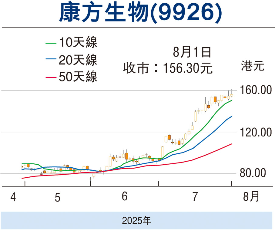 現金流與資本結構亦有望同步改善。2025年底手持現金預計達25.8億元,較2024年增加約3,000萬元;同時,流動比率將上升至9.8倍,資產負債率則降至46.7%,為後續擴大適應症及海外臨床提供充足彈藥。總括而言,康方生物已走出授權收入高基期的陰影,憑藉雙抗賽道的臨床與商業化雙重突破,2025年有望迎來「產品收入—研發投入—新適應症獲批」的正向循環,並重新塑造市場對其估值的想像空間。筆者認為,可考慮於現價買入,上望180元,跌穿135元止蝕。