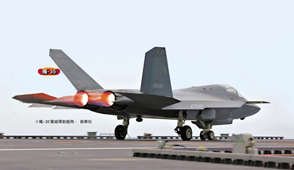 與遼寧艦、山東艦滑躍起飛方式不同,福建艦的電磁彈射系統能在最大程度上「賦能」艦載機。電磁彈射器允許殲-35以「滿油+隱身構型」起飛,最大化其隱身和航程優勢;允許殲-15T「滿油滿彈」起飛,充分發揮其重型戰鬥機的載彈量和打擊能力。與此同時,大幅提高諸如空警-600這類大型支援飛機的出動和回收效率,保證關鍵戰場態勢掌控的持續性。