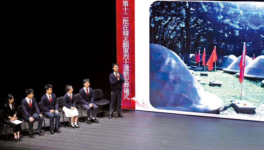 同場另有參與第十二批在韓中國人民志願軍烈士遺骸回國的師生代表團,以「以吾輩之聲,訴英烈歸途」為題,分享參與愛國主義教育活動的感受。