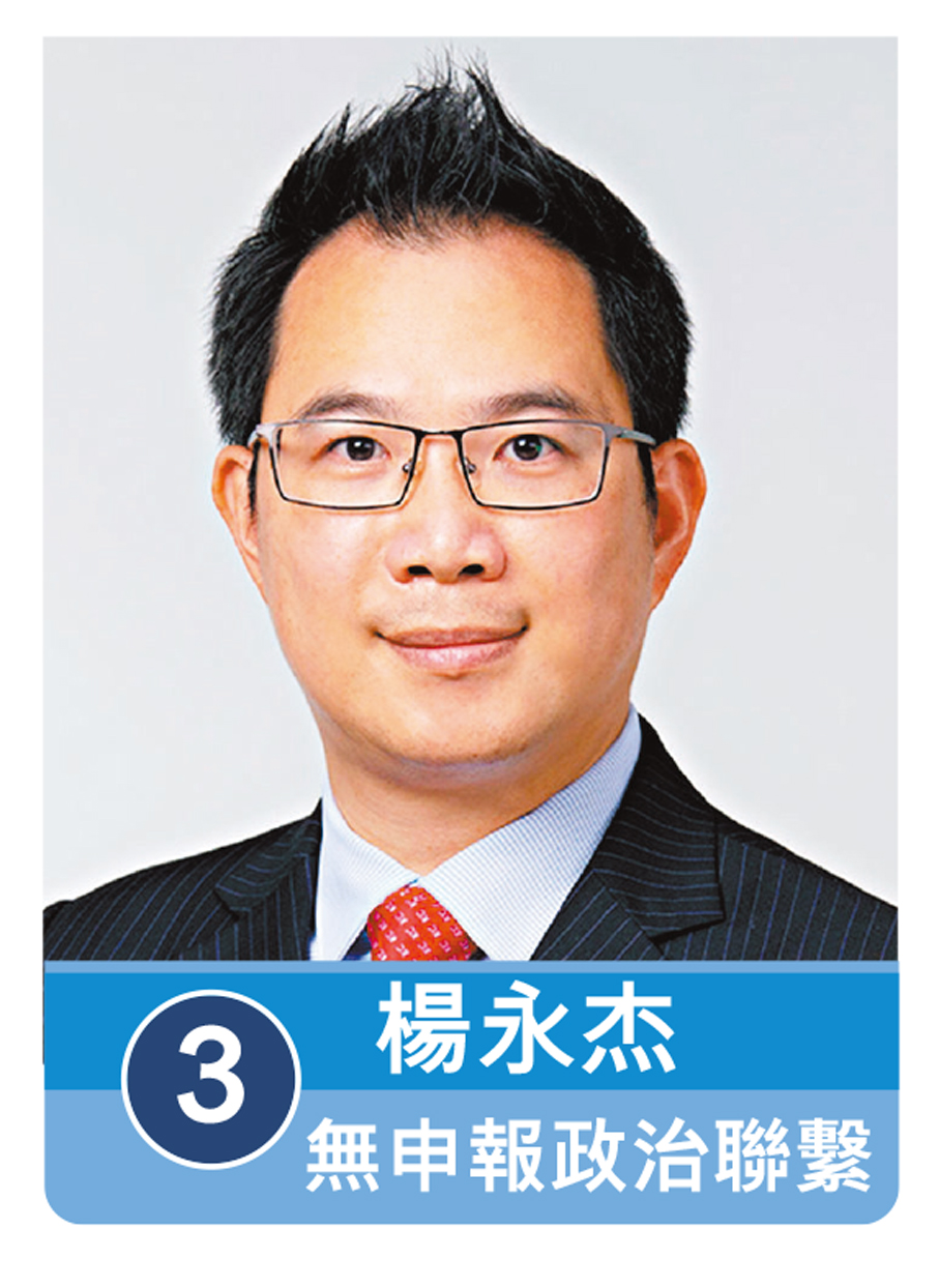 3號候選人、爭取連任的楊永杰表示,過去的議會經驗中,他將市民的意見與訴求帶入議會,聚焦解決社區長期積累的棘手議題,今次競逐連任將以「十三大政綱」為重點,全面涵蓋置業安居、便利出行、樂齡安老、社區支援、低空經濟、寵物經濟與職專培訓等多項範疇,全力以赴建設一個宜居、創新、共融的九龍中,為市民打造更美好的生活環境。