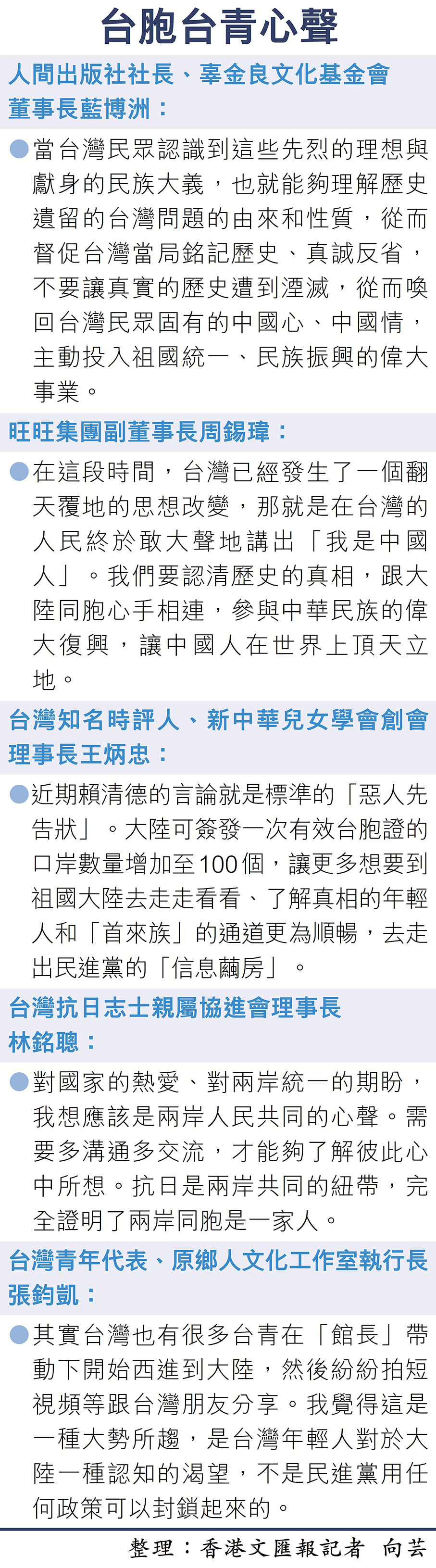 台青:統一那天將是兩岸家人團圓榮耀時刻