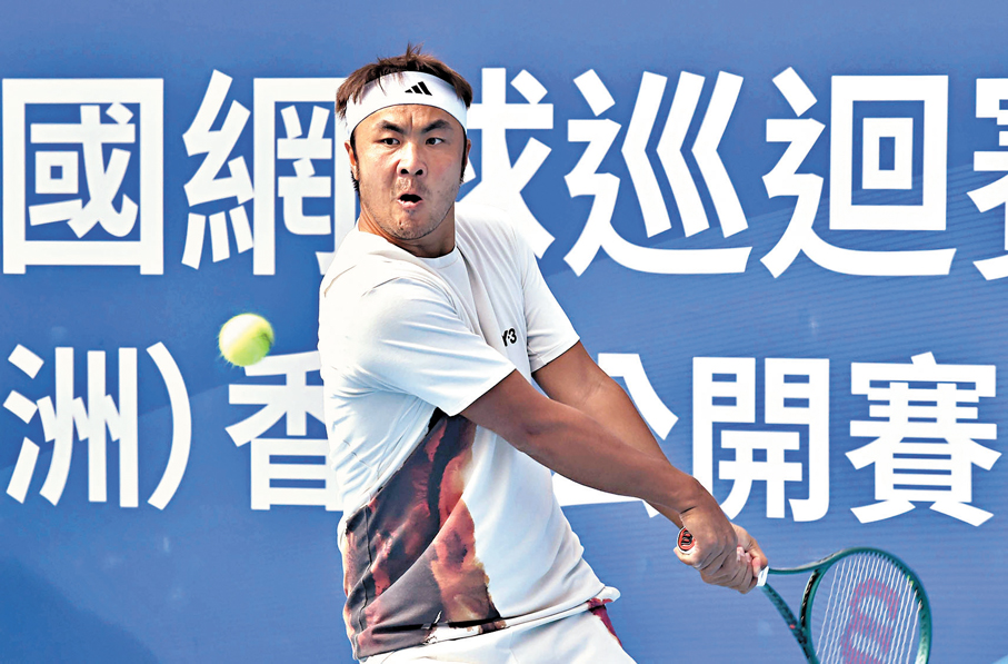 在維園網球場舉行的2025中國網球巡迴賽香港公開賽男子單打準決賽中,北京選手特日格樂以2:0戰勝天津選手張常黎晉級決賽,圖為特日格樂在比賽中。 新華社