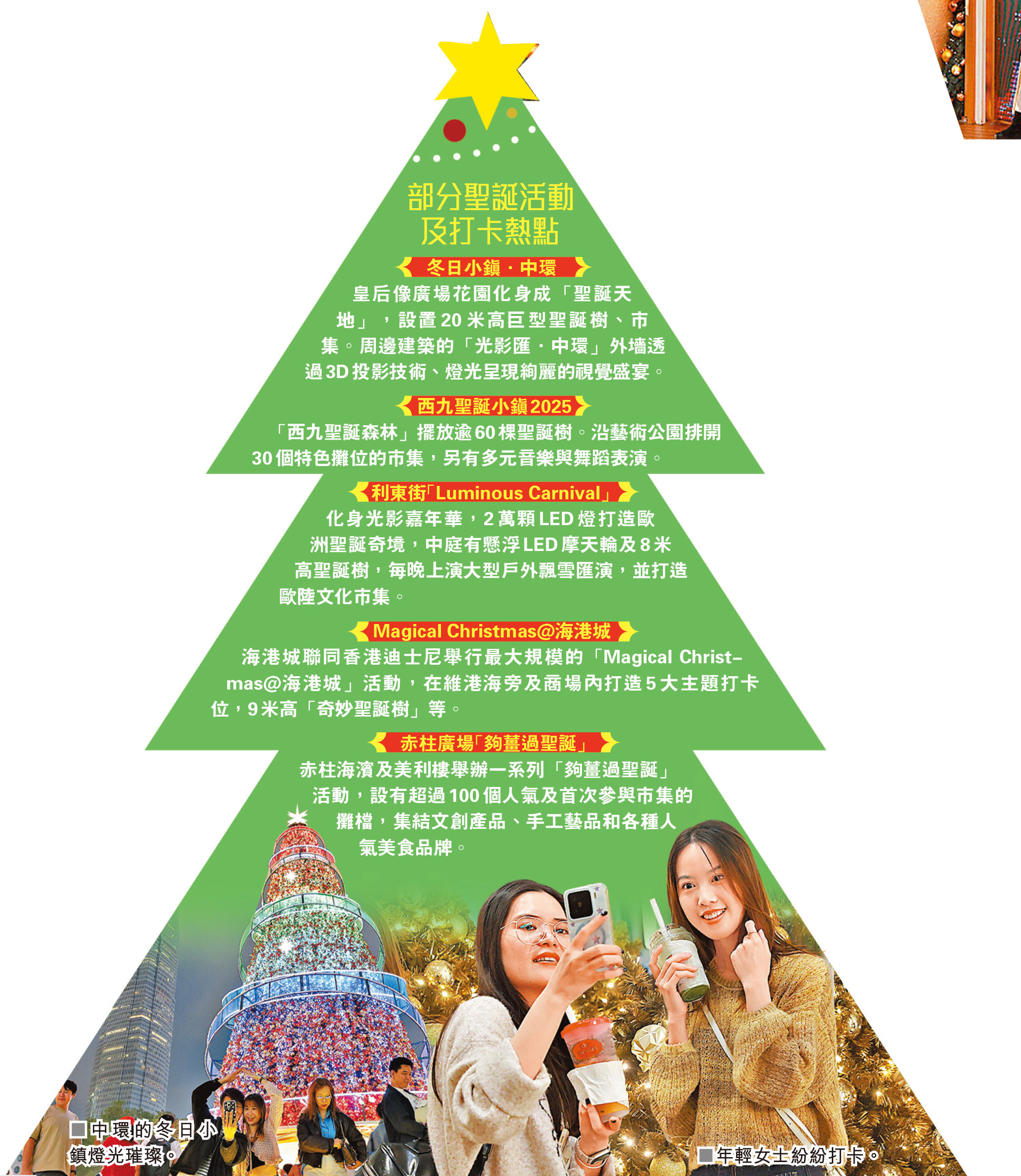 聖誕及元旦將至,全港洋溢節日氣氛,預計將有大批旅客訪港歡度佳節。文化體育及旅遊局昨日公布,前日(20日)錄得近23.6萬人次旅客訪港,當中內地旅客佔近18.8萬人次,為自國慶黃金周以來新高,非內地旅客則近4.8萬人次,為今年新高,亦是疫情以來第二高。旅館業界人士指出,旅館預訂與入住率均按年上升約10個百分點,聖誕期間的訂房率高達九成,還出現旅客提早訂房的情況,早在10月已有人預訂本月底的酒店房間,反映盛事經濟帶動旅遊業增長。