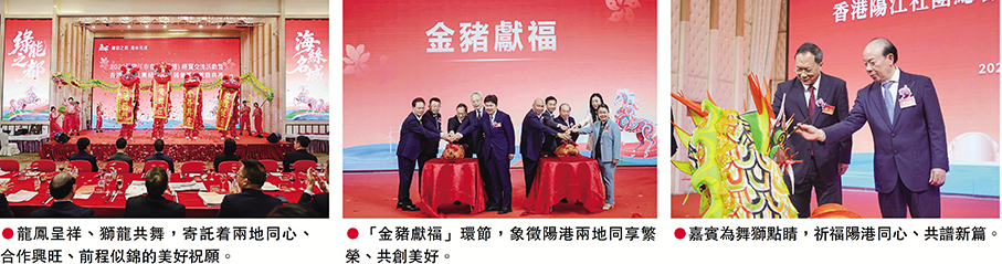3月28日,陽江市春茗(香港)經貿交流會暨香港陽江社團總會第二屆會董會就職典禮在九龍灣宏天廣場百樂門國際宴會廳隆重舉行。為團結旅港陽江鄉親、聯動陽港兩地發展,香港陽江社團總會以此次盛會為紐帶,以「深化陽港合作、共謀高質量發展」為主題,匯聚兩地政商界翹楚、社團領袖與企業精英四百餘人,共敘家鄉情誼、共商合作大計、共譜發展新篇,為陽港經貿往來、文旅融合與民心相通注入強勁動能,更以愛國愛港愛鄉的赤子情懷,書寫同根同心、同向同行的時代新篇章。