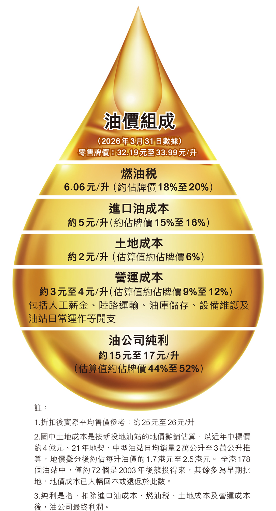 中東局勢陰晴不定,國際油價似過山車,香港文匯報觀察香港油價與進口價變化,發現過去兩年(截至2月中東戰爭開打前)每公升進口油價減約25%,但期內香港零售價不跌反升近20%。戰事開打後,在美國總統特朗普出爾反爾下,國際油價一度大跌逾一成,香港零售價卻紋絲不動,其後國際油價上升,香港升幅更大,疑似「加快減慢」、「只加不減」。有立法會議員指出,香港油價完全由市場主導,缺乏行政調控,政府除了要推出紓困措施,也同時要考慮引入行政措施限制單次加價幅度,以免公帑補貼油商賺取暴利。 ●香港文匯報記者 廣濟