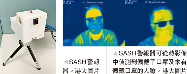 港大計算機科學系副教授黃君義和講師蔡綺琼率領團隊,利用低成本的Raspberry Pi 4外置硬碟系統構建SASH警報器。Raspberry Pi 4能提供警報器所需的計算資源,以支援輕量級伺服器應用程式及對內置傳感器接收的數據進行分析。至於SASH警報器則配置LED燈、揚聲器及民用消費級別的熱像儀, 團隊特別為警報器開發應用程式,偵測周圍的人的體溫是否有異常,以及有否佩戴口罩,也可從公開資料庫中收集最新疫情資訊。