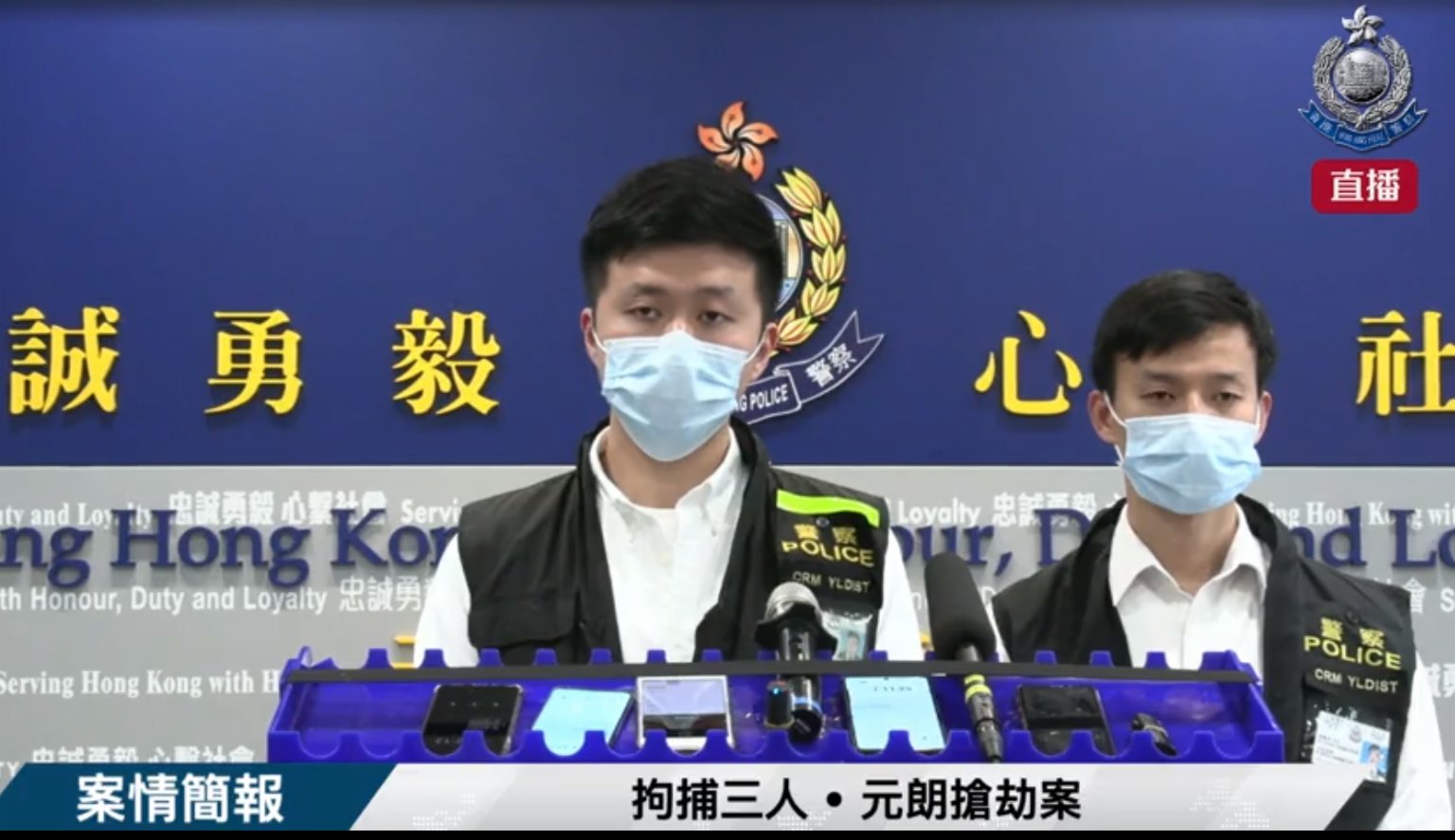 上周五事發後,元朗警區重案組第一隊接手調查,在商戶配合下翻查大量閉路電視,3日內迅速鎖定疑犯。事發當日及翌日在天水圍和元朗區拘捕作案3名疑犯,分別14歲姓李、16歲姓梁本地男子,二人分別報稱學生和兼職侍應,有三合會背景。另1名被捕20歲南亞裔男子持香港身份證,無三合會背景,警員在其寓所搜回一批屬於受害人的失物,包括14,000元現金、手機、八達通等。