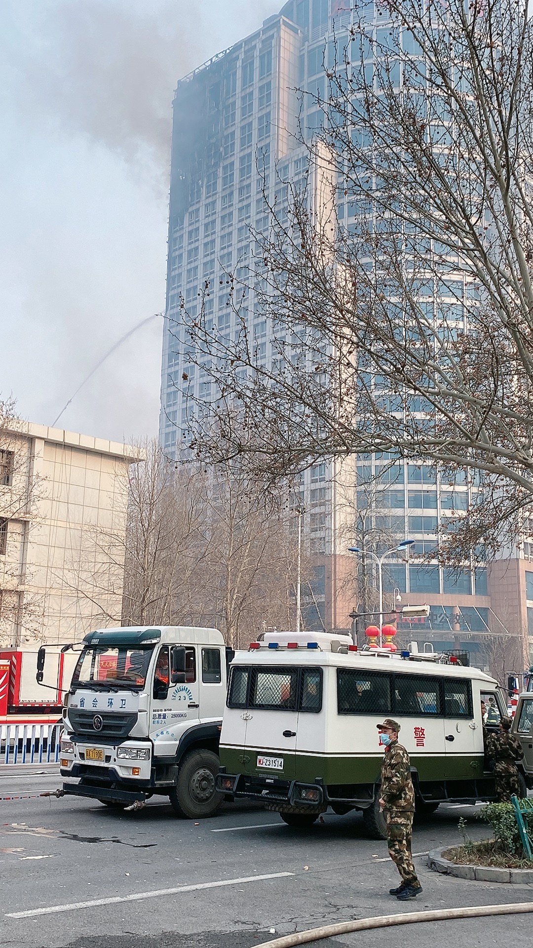 (香港文匯網記者 顧大鵬 石家莊報道)3月9日上午11時20分左右,石家莊建設大街與範西路交口東南角的眾鑫大廈外牆保溫材料起火。