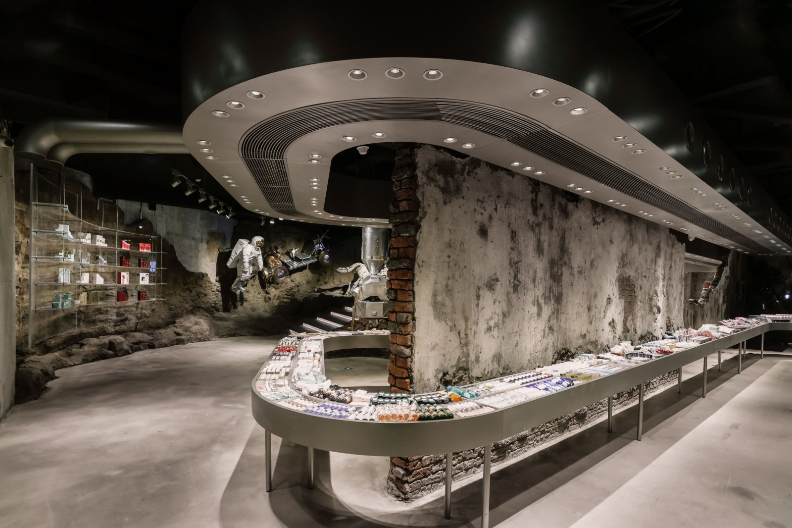 HAYDON黑洞一貫延續太空科技元素,探索美妝的未來消費場景;深圳文和友融合「懷舊」與「科技」美感的沉浸式主題文化,還原城市美食和時光記憶。二者跨界打造的「時空地下城」兼具未來感與殘缺美,構造了深圳文和友內獨一無二的賽博朋克+科幻的空間質感,在場景風格和消費品類上互濟賦能。