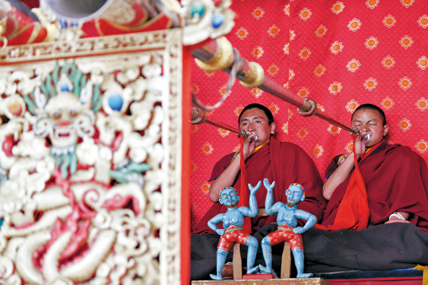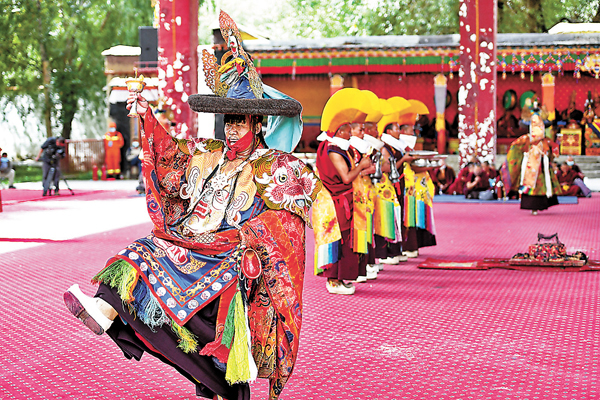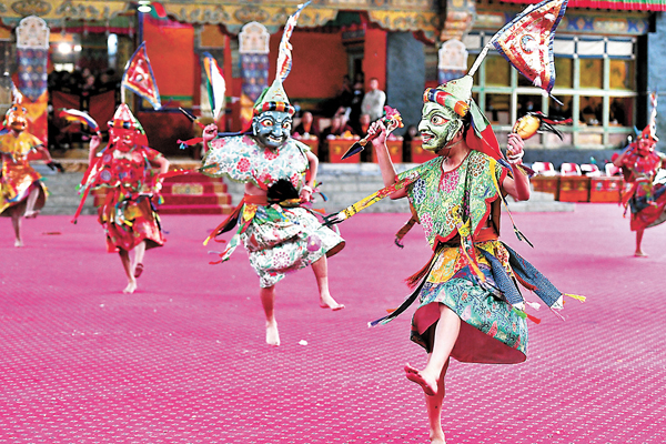 西藏自治區日喀則扎什倫布寺日前舉行一年一度的傳統跳神活動,以此驅邪禳災,祈願國泰民安,風調雨順。據悉,跳神是由僧侶表演的一種宗教舞蹈,藏語「羌姆」。僧人們頭戴面具,身穿戲裝,手持各類道具,逐次表演金剛、骷髏、鹿牛、比丘、鴉鴟、六長壽等數十節神舞。