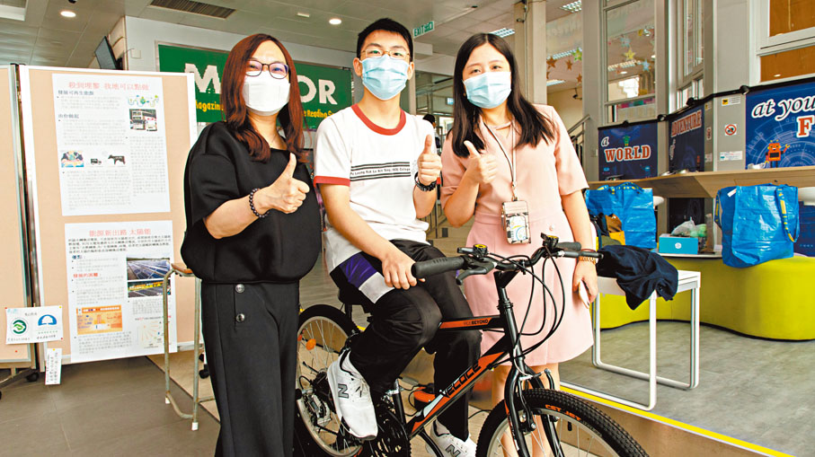 我校於2019年獲環保組織贈予一架環保發電單車,並於2021年4月舉行一連三日的發電單車工作坊,同學在活動中能夠親身嘗試以踩踏單車的方式發電,為電腦、風扇等電器供電運作,同場亦擺放有關全球暖化的展板。是次活動讓同學學習到課外的環保知識,亦親身體驗了發電單車的運作,明白到電力得來不易,要好好珍惜地球資源。