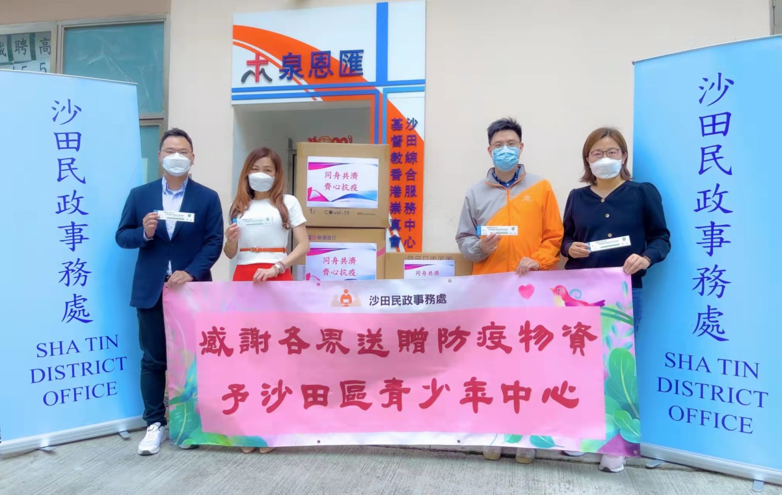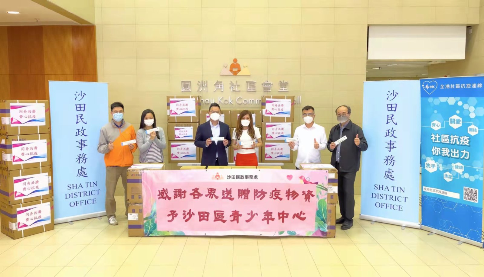 大公文匯全媒體報道:為全力支持香港同心抗疫,沙田民政事務處聯同沙田區青年活動委員會主席王槐裕以及沙田社區抗疫連線,今日(17日)於沙田圓洲角社區會堂舉行啟動禮,向區內16間綜合青少年服務中心和兒童及青年中心(中心),捐贈快速抗原測試套裝、保護衣及口罩等抗疫物資,幫助區內有需要人士及中心工作人員,與市民同心抗疫。