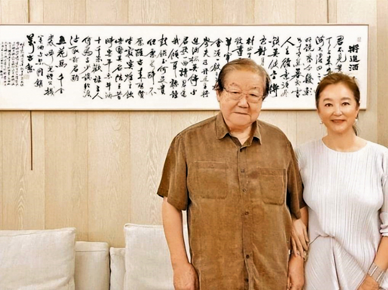 近日林青霞邀請了書法家兼學者金耀基教授到她的豪宅作客,在《將進酒》字畫前合照,並上載了相關照片到社交平台,這是林青霞豪宅失火後首次有照片曝光。據悉,當日豪宅失火,她最擔心是牆上掛的《將進酒》字畫有沒有被燒毀,幸好火勢沒有蔓延到林青霞的房間,基本上書、畫都沒有「付之一炬」。