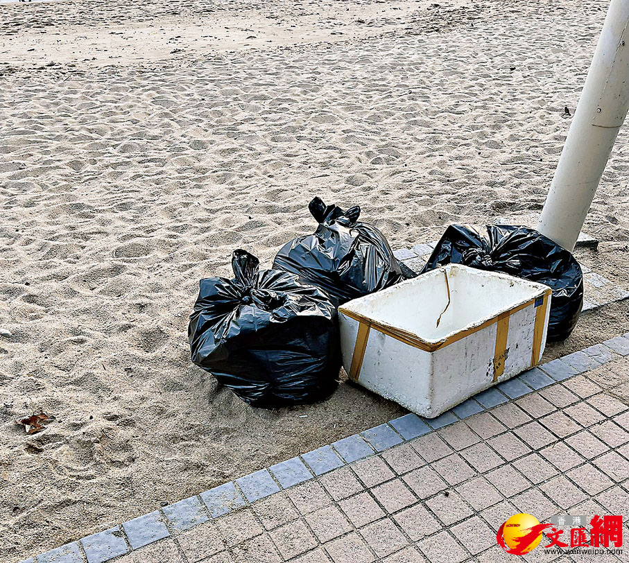 (香港文匯報記者 張弦)適逢中秋及周末長假,不少家長昨日帶同小朋友去沙灘沐浴陽光和游泳消暑,惟悠閒過後留下的可能是一地垃圾,更令清潔工「頭痕」的是市民煲蠟之後殘留的頑固蠟燭油印。香港文匯報記者昨日下午前往深水灣泳灘直擊假期沙灘的衞生情況,現場可見灘邊有不少市民穿着泳衣曬太陽,亦有不少家長帶着小朋友游泳或玩沙。記者發現有外籍人士聚集完之處棄置了垃圾沒有收拾撿走,灘邊設置的垃圾桶附近都堆積有大小包的黑色垃圾袋,記者亦發現沙灘上遺下疑似月餅包裝袋。雖然並無發現市民煲蠟殘留的燒焦了的月餅罐及蠟燭油印,相信只是清潔工已於早上清理好。