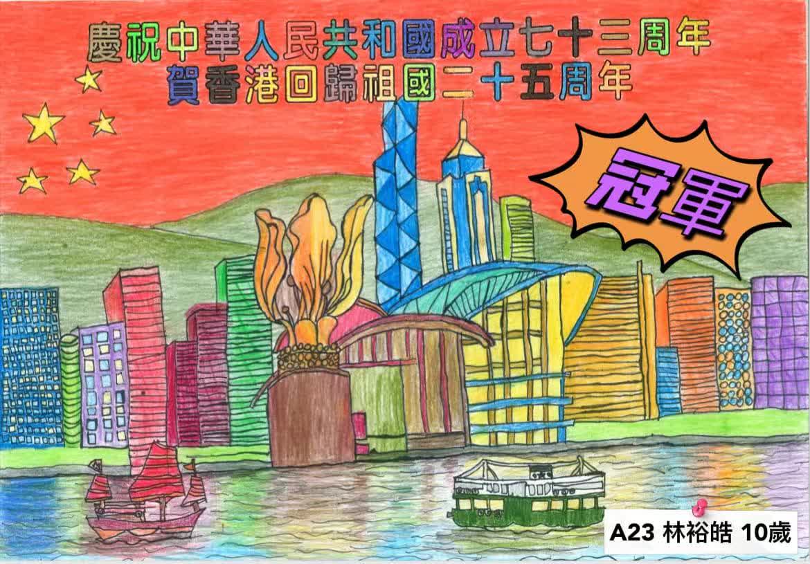 大公文匯全媒體報道:由華潤燃氣、華潤環保、華潤化學材料、華潤微電子、李清霞議員辦事處及鰂魚涌居民協會聯合主辦慶祝中華人民共和國成立73周年暨香港回歸祖國25周年兒童填色及繪畫創作比賽於星期日(9日)順利舉行。比賽共收到70份作品,經網上1000多位市民及22位主席評判,評選出6幅得獎畫作。