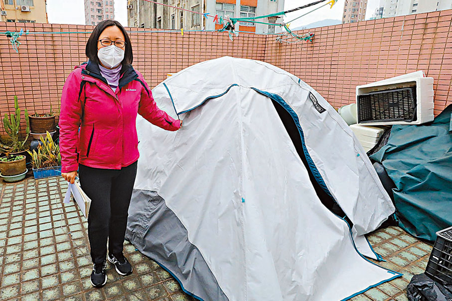 方桂芳同時提到,政府應改善有關的配套安排,尤其疫情期間,一旦有「內勞」染疫就應盡快安排隔離措施。以該院舍為例,疫情期間在天台搭建臨時帳篷安置因染疫而無法返回宿舍的內地護理員,香港文匯報記者直擊到一名「內勞」瑟縮帳篷內,她無奈地說:「政府未能及時送確診者入院或到隔離中心,我又唔能夠送他們去酒店播疫,到宿舍更不能,唯有暫時安排他們住在天台接受自我隔離。」