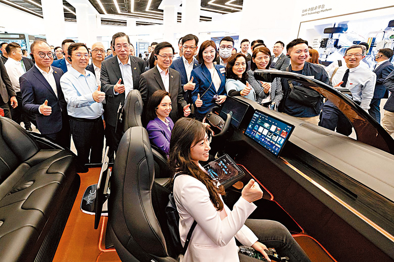 (香港文匯報記者 帥誠 深圳報道)特區政府和立法會大灣區訪問團在第二日訪問行程,率先到訪位於深圳的內地最大新能源汽車企業比亞迪集團總部,了解其在汽車、軌道交通、新能源和電子四大產業的最新發展情況。訪問團成員乘坐了「雲巴」,經歷5分鐘無人駕駛軌道系統的體驗。特區行政長官李家超在體驗後表示,「雲巴」就像空中版的輕鐵,建造軌道所需空間較少,適合在地形狹窄的環境中使用。他認為,此次考察有助團隊在建設綠色智能集體運輸系統政策措施上有更多新思路,而任何對香港發展有幫助的情況,政府都會吸納有關的經驗和技術。被問及會否引入「雲巴」,他表示運輸及物流局一向積極審視有關綠色智能集體運輸系統的發展,政府對此持開放態度。