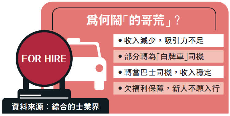 有立法會議員表示,「有車無人開」連累「市民無車搭」,要解決問題,政府當局須從優化管理及機制入手,探討制定措施,吸引新血入行,解決「的哥荒」。