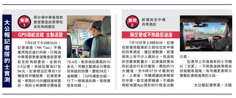 《大公報》昨日起推出「的士面面觀」系列報道,深入探討為何「截車難」。記者連續五日在不同時段進行14次搭的士實測,發現部分司機拒載。有市民期望政府可增發的士牌照,增加的士數量,解決問題。